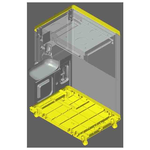 黄色で着色した部分以外の部分が意匠登録を受ける部分である。「透明部分を示す右上から見た斜視図」、「透明部分を示す左上から見た斜視図」のうち緑色で着色した部分が透明部分であり、板状である。図面表面に表された濃淡は、立体表面の形状を特定するためのものである。