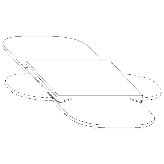 本願意匠に係る「生理用ナプキン」は、「使用状態を示す参考図」に示すように、本体上に取付シートを介して補助パッドを備えている。取付シートの縁は、例えばミシン目状の切り込み(模様としては不図示)によって、切り離し可能になっており、補助パッドは本体から除去することができる。補助パッド除去によって残る取付シートの部分は横漏れ防止部として機能する。