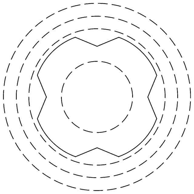 実線で表した部分が、部分意匠として意匠登録を受けようとする部分である。右側面図は左側面図と、底面図は平面図とそれぞれ対称に表われるため省略する。A-A断面図は、背面図のA-A切断線において矢印方向に見た断面図である。