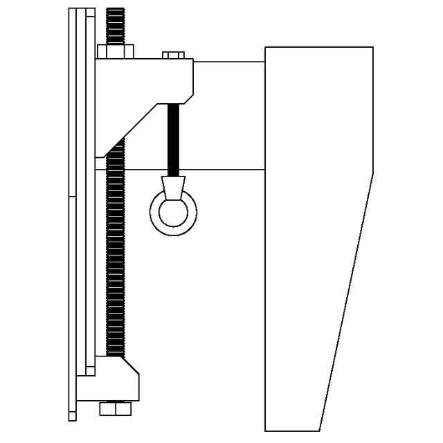 本物品は、建物の構造躯体(壁や梁や柱等)に対して膜天井の端縁部を支持するための膜天井支持具に関する。「各部名称を示す参考斜視図」及び「各部名称を示す参考分解斜視図」に示すように、本物品の膜天井支持具10は、ベース部材11と、高さ調節部材12と、ストッパー部材13と、昇降部材14と、吊下げ部材15とで構成される。ベース部材11は、ベース部材11の平板状部分から左右一対に設けられた被固定部11a,11aと、ベース部材11の平板状部分の前面側に左右一対で上下方向に設けられたガイド部11b,11bと、ベース部材11の平板状部分の前面側下部に設けられた高さ調節部材保持部11cと、ベース部材11の平面状部分から前面側に突出してその先端部が下向きに設けられたアーム部11dとを備えている。被固定部11a,11aは、「使用状態を示す参考図1」及び「使用状態を示す参考図2」に示すように、壁W等の構造躯体に対して、ボルト等の固定具を用いて固定される部分となっている。ガイド部11b,11bは、「各部名称を示す参考斜視図」及び「各部名称を示す参考分解斜視図」に示すように、それぞれ、上下方向に延びる案内溝を有しており、後述する昇降部材14の被ガイド片部14aを挿入することで、昇降部材14を上下方向に案内する部分となっている。高さ調節部材保持部11cは、後述する高さ調節部材12を保持するための部分となっている。アーム部11dは、「使用状態を示す参考図1」及び「使用状態を示す参考図2」に示すように、その下向き部分の先端部(下端部)に案内フレーム50を固定するための部分となっている。また、高さ調節部材12は、「各部名称を示す参考斜視図」及び「各部名称を示す参考分解斜視図」に示すように、ネジ軸部と頭部とを有するボルトとなっており、そのネジ軸部を、ベース部材11の高さ調節部材保持部11cに設けられた貫通孔に対し下側から挿通し、昇降部材14に設けられたネジ孔に螺合した状態とされる。さらに、ストッパー部材13は、ナットとなっており、高さ調節部材12(ボルト)のネジ軸部における頭部付近に螺合することで、高さ調節部材保持部11cの貫通孔に挿通された高さ調節部材12が下側に抜け落ちないようにするためのものとなっている。さらにまた、昇降部材14は、「各部名称を示す参考分解斜視図」に示すように、左右一対の被ガイド片部14a,14aと、上記の高さ調節部材12(ボルト)のネジ軸部を螺合するためのネジ孔と、後述する吊下げ部材15を取り付けるための貫通孔とを有している。そして、吊下げ部材15は、ネジ軸部と頭部とを有するボルト15aと、ボルト15aのネジ軸部の先端部(下端部)に螺合される掛止具15bとで構成され、上記の昇降部材14に設けられた貫通孔にボルト15aのネジ軸部を上側から挿通することによって、昇降部材14から垂れ下がった状態に取り付けられる。本物品の膜天井支持具10は、「使用状態を示す参考図1」に示すように、建物の構造躯体(同図では壁W)における天井付近に、略水平方向に所定間隔を隔てて複数台を並べて固定するとともに、それぞれの膜天井支持具10のアーム部11dに、案内フレーム50(アングル鋼等)を掛け渡した状態で固定して使用される。建物の構造躯体における、これらの膜天井支持具10に対向する箇所(対向する壁等)にも、同様に、膜天井支持具10が固定される。一側の構造躯体(壁W等)に固定された膜天井支持具10と、他側の構造躯体(対向する壁等)に固定された膜天井との間に、膜天井100(「使用状態を示す参考図2」を参照。)を掛け渡した状態とすることによって、膜天井100が施工される。膜天井100は、案内フレーム50の下側に掛け回され、その端縁部を吊り下げ部材15の掛止具15bに掛止される。本実施形態では、膜天井100の端縁部にスライドレール60を取り付けており、そのスライドレール60から上向きに設けたフックを掛止具15bに係止するようにしている。高さ調節部材12(ボルト)の頭部を、スパナや六角レンチ等の工具を用いて下側から操作し、高さ調節部材12(ボルト)を正側に回転させると、高さ調節部材12(ボルト)のネジ軸部に螺合された昇降部材14がガイド部11bに沿って上昇する。これにより、膜天井100を張った状態とすることができる。一方、高さ調節部材12(ボルト)を逆側に回転させると、昇降部材14がガイド部11bに沿って下降する。これにより、膜天井100を弛んだ状態とすることができる。本物品の膜天井支持具は、膜天井の施工を容易にするだけでなく、その施工後において、膜天井の張り具合を容易に調節することが可能なものとなっている。