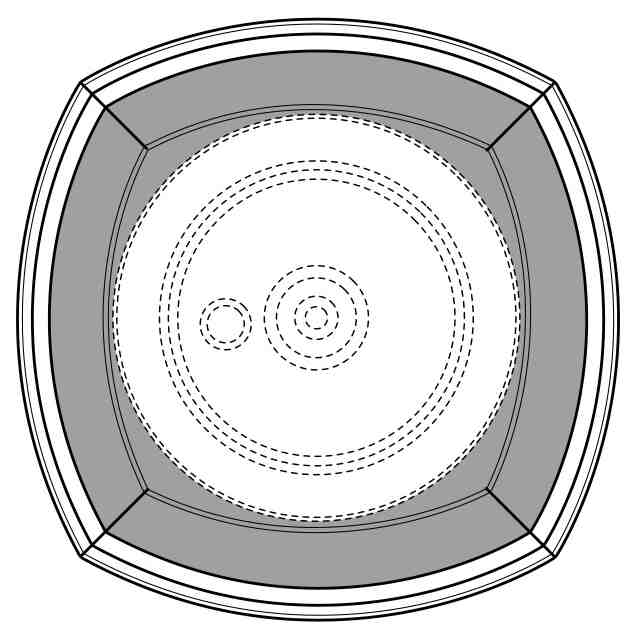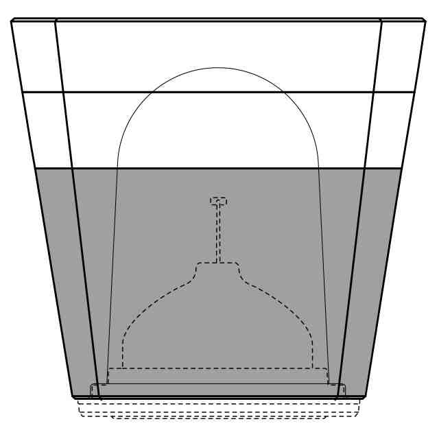 実線で表された部分が、意匠登録を受けようとする部分である。本物品の本体部(実線部分)は透明である。また、本物品の薄墨を施した部分は、着色された透明部である(正面図、右側面図 参照)。図に現れる細線は、立体表面の形状を特定するものであり、意匠の模様を構成するものではない。各断面図において、内部構造は省略している。背面図は、正面図と同一のため省略する。左側面図は、右側面図と同一のため省略する。「透明部分を示す参考図」において着色された部分は、透明である。