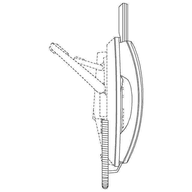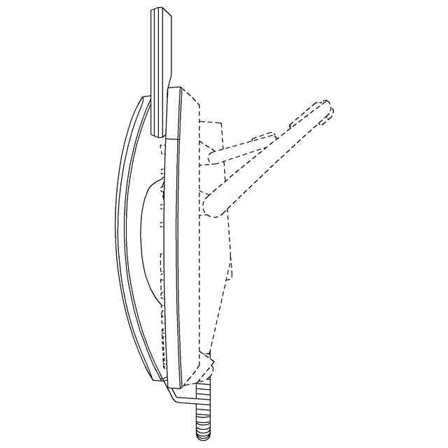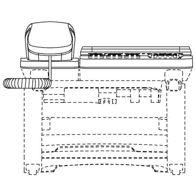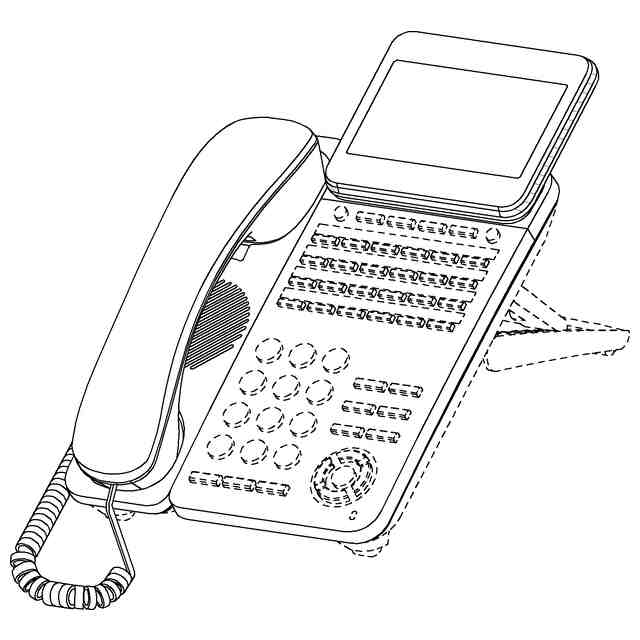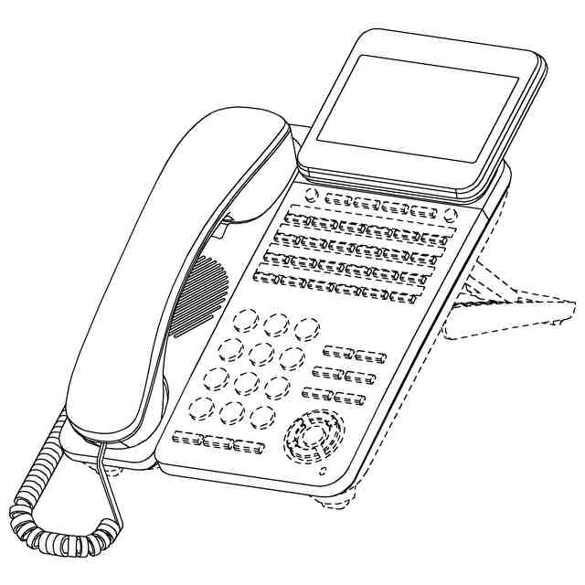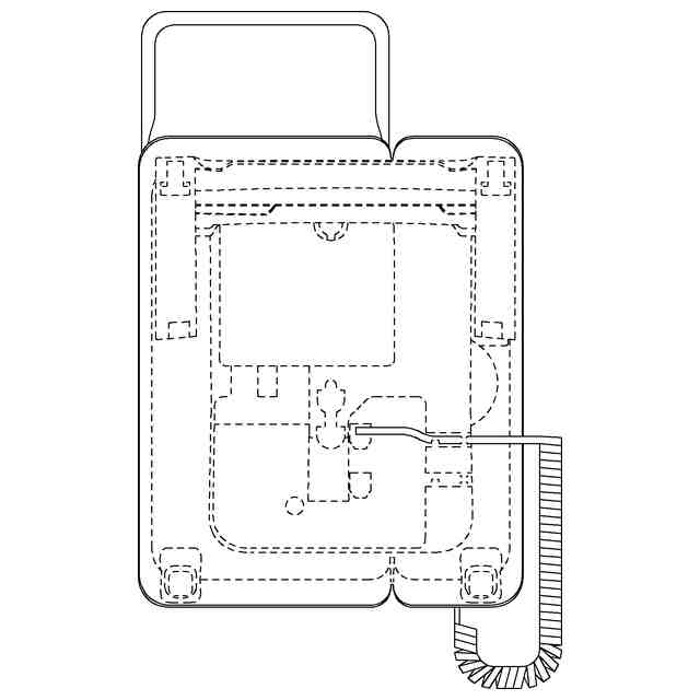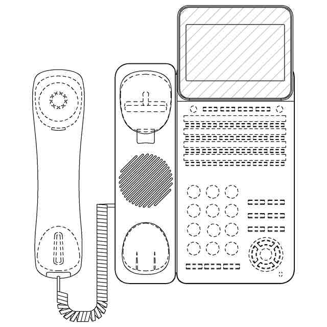 実線で示した部分は部分意匠として登録を受けようとする部分である。「正面図」等に表れる表示部はタッチパネルディスプレイとなっている。「参考斜視図」、「参考平面図」中、斜線を施した部分は発光部であって透光性を有する。「受話器を外した状態を示す参考正面図」中、斜線を施した範囲の前面パネルは透明である。
