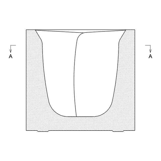 本願意匠の食品用包装スリーブは、使用状態を示す参考斜視図のように、カップ形状の食品包装体を包む物である。使用状態を示す参考A-A線断面図のように、背面の左右のフラップを内側に折り曲げてできる空間には、食品の調味料等を収納することができる。