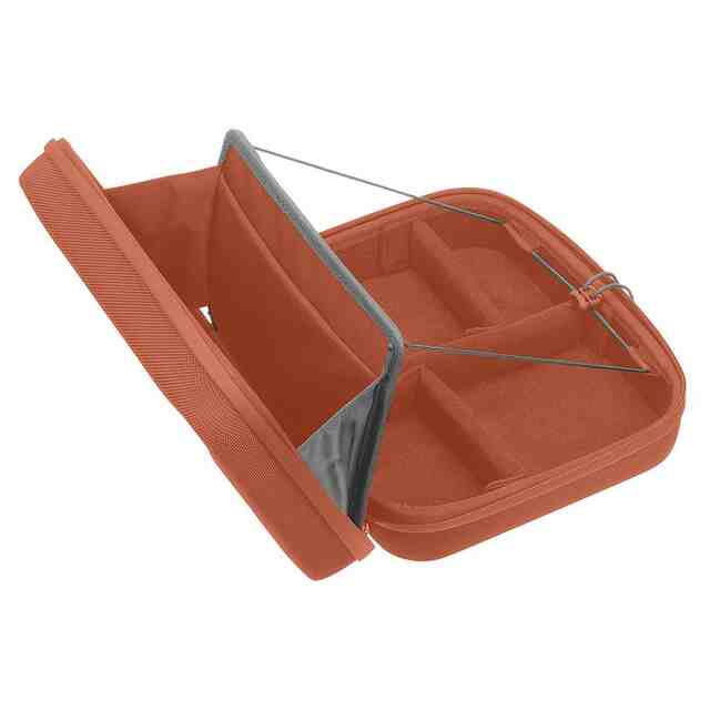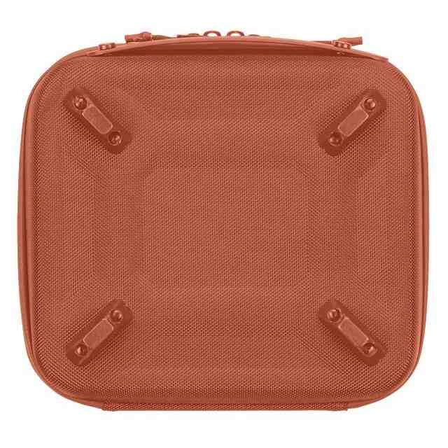 赤色に着色された部分を除く部分が、意匠登録を受けようとする部分である。開いた状態の各図及び紐の絞りを緩めて中央収納部を蓋側に収めた状態の斜視図を含めて意匠登録を受けようとする部分を特定している。各図において表面部全面に表された濃淡は、いずれも立体表面の形状を特定するためのものである。