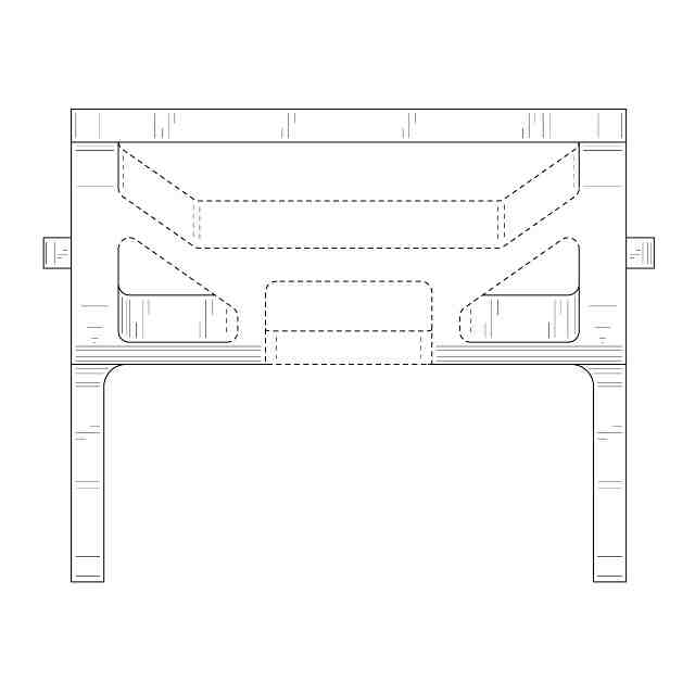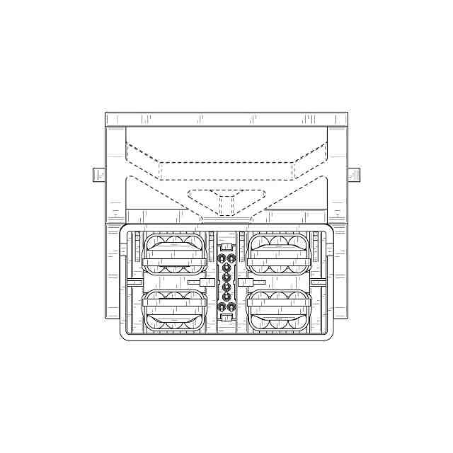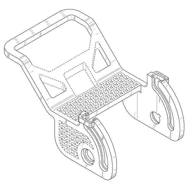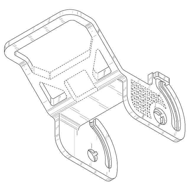 実線で表された部分が、意匠登録を受けようとする部分である。細線は立体表面の形状を表す。各平面図及び各底面図は、時計回りに90度回転した状態を表している。