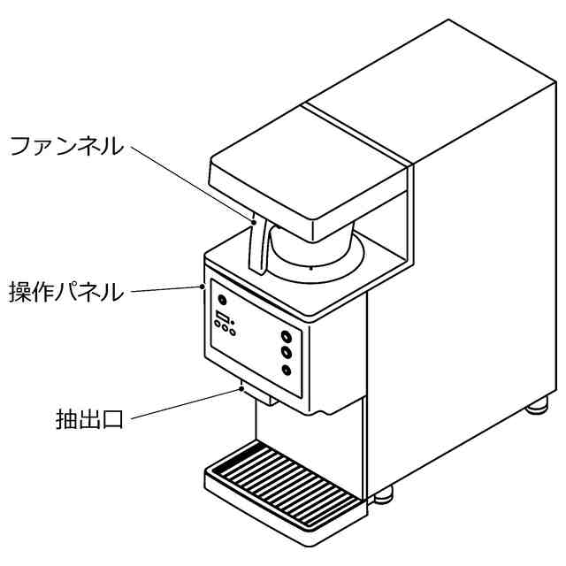 この意匠に係る物品は、使用状態を示す参考図に示すようにファンネルを載置して使用可能な飲料供給機である。