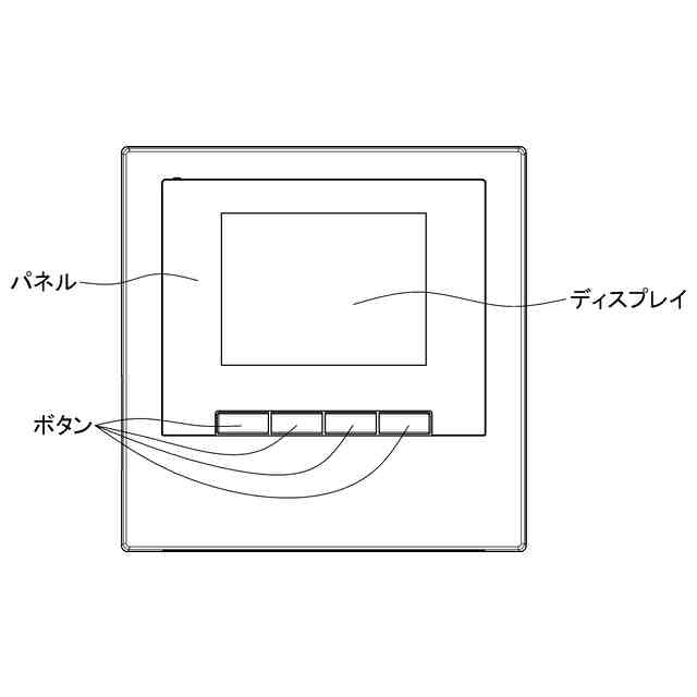 本物品は、室内親機として使用されるインターホンである。本物品には、各部の名称を示す参考正面図に示すように、透光性を有するパネルによって覆われたディスプレイと、左右に四つ並んだ横長矩形状のボタンとが上から順に設けられている。