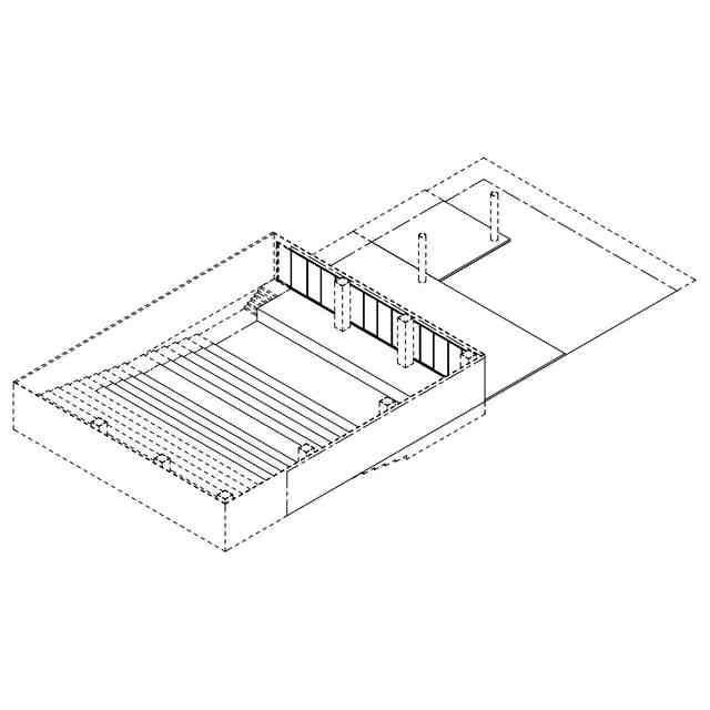 この建築物は、研究室、講義室、実習室、食堂などを含む複合建築物である。図面に表した意匠は、講義室と屋外デッキ周辺に係る部分である。使用状態を示す参考図2に示すように、講義室と屋外デッキとの間に設けられた扉を開放することによって、講義室と屋外デッキを一体的に利用することができる。