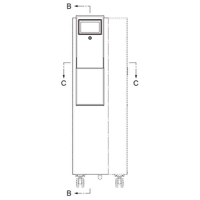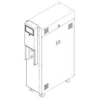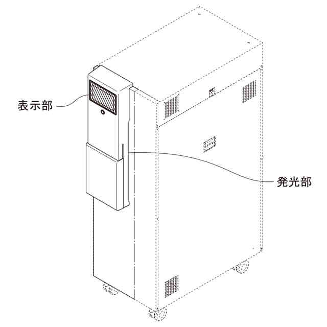 本物品は、平板状の正面部の上側に、表示部を正面上側に、発光部を左右側面に有する縦長略直方体状部を備えた純水製造機である。本物品は、水等から不純物を取り除くことにより純水等を製造する。表示部はタッチパネル式で操作に使用する。発光部は細長帯状の孔部で、内蔵したLEDの光を外部に漏らすことで照明を行う。本物品は、給水口部から水等を取り入れて、送水口部から純水等を外部へと供給する。