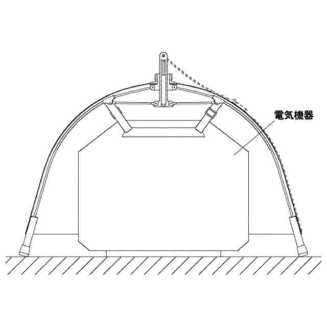 本物品は「電気機器用カバー」であって、屋外にて発電機やバッテリーなどの電気機器を雨から守るためのカバーとして使用され、雨の中でも電気機器の使用を可能とするものである。なお、「正面図」に示されている矩形状部は開閉可能な扉であり、電気機器の状態の確認や操作を行う際に開かれる。また、本物品は、宅配業者が配達した商品などを玄関先に置いておく(置き配)場合に、当該商品等を雨や動物等から守るためのカバーとしても使用することが可能である。