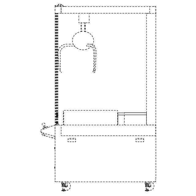 本物品は、本体上部に透明な四面を持つクレーンゲーム機である。意匠登録を受けようとする部分は、ゲーム機内のフィールド面及びフィールド左方に配置され景品落とし口の奥行に合わせて伸縮可能なバンクである。バンクはゲーム中に移動した景品をクレーンアームが届く位置にとどめるために用いられる。