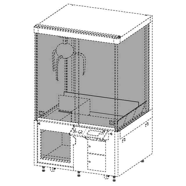 本物品は、本体上部に透明な四面を持つクレーンゲーム機である。意匠登録を受けようとする部分は、ゲーム機内のフィールド面、フィールドを仕切るパーティション及びフィールド右方に配置されるバンクである。パーティションは景品エリアと装飾エリアを仕切るために、バンクはゲーム中に移動した景品をクレーンアームが届く位置にとどめるために用いられる。