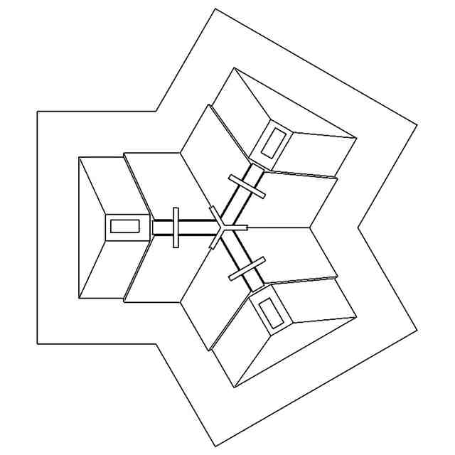 本物品は、貯水及び排水が可能な路面を成型するための路面成型補助部材であり、内部に貯水空間が形成されている。路面成型補助部材の上部側には、貯水空間と連通されるY字形状の貫通孔が形成されており、下部側は、開放されている。参考図1に示すように、路面成型補助部材の端部同士を壁部材(参考図2及び3)を介して係合させることで、6つの路面成型補助部材によって囲まれた打ち込み空間が形成される。路面の成型に当たっては、地面に敷かれた砕石等の上に本物品を配置した上で、打ち込み空間にコンクリート等の路面成型材料を打ち込む。打ち込まれた路面成型材料が硬化することで、貫通孔から貯水空間を介して地面へ繋がる排水路が形成された路面が成型される。参考図2及び3に示すように、壁部材の下部に凹部を形成することで、参考図1に示すように、直線状に配列された複数の凹部に鉄筋等の棒状部材を挿通可能な構成としても良い。