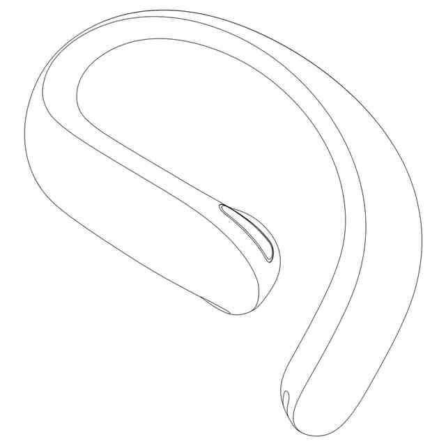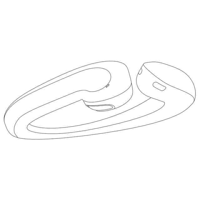 Design No.1 is an open earphone. 1.1)Front; 1.2)Back; 1.3)Left; 1.4)Right; 1.5)Top; 1.6)Bottom; 1.7)First perspective view; 1.8)Second perspective view