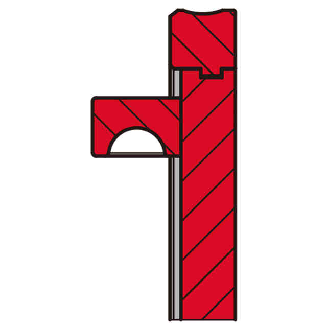 薄墨を施した部分を除く部分が、意匠登録を受けようとする部分である。断面図に表れる赤色は、断面形状のみを表すものである。A-A断面図、BC間拡大正面図、DE間拡大平面図、FG間拡大底面図、H-H断面図、IJ間拡大右側面図、KL間拡大断面図、MN間拡大断面図、OP間拡大断面図、斜視図を含めて、意匠登録を受けようとする部分を特定している。