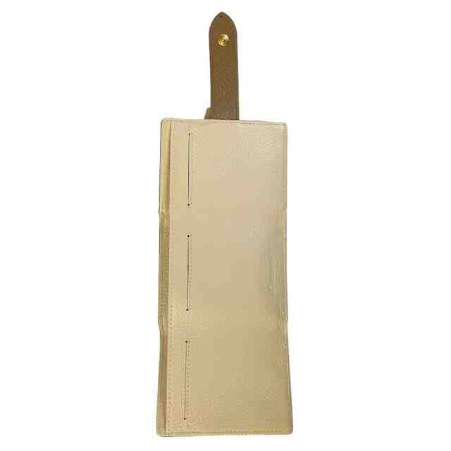 本物品は、三つ折りの財布である。「使用状態を示す参考図1」に示すように、本物品を開いた内側には、カード入れと札入れとが設けられている。カード入れには、キャッシュカードやクレジットカードなどの各種カードを収納することができる。札入れには、紙幣の他、レシート、領収書、クーポン券などを収納することができる。札入れには仕切りが設けられているので、紙幣の種類を分けて収納したり、紙幣とレシート等を分けて収納したりすることができる。「使用状態を示す参考図2」に示すように、本物品の背面には、小銭入れが設けられている。「使用状態を示す参考図3」に示すように、財布の厚さ(収納量)に応じて、スナップボタンで留める位置を変えることができる。