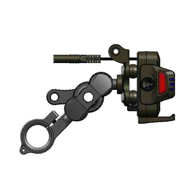 本物品は、オートバイや電動自転車に固定して、携帯電話などの電子機器を支えるためのものである。