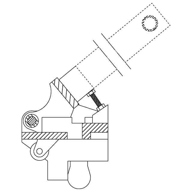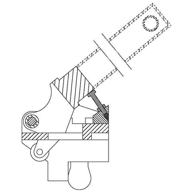 実線で表した部分が、部分意匠として意匠登録を受けようとする部分である。図面中、省略部分は、願書添付図面上10.5cmである。本意匠は、動的意匠に係るものである。本意匠は、板ばねを圧縮する直前の状態を示す右側面図のように、レール締結用工具のアームを回転開始位置から回転させる直前の形態と、板ばねを圧縮した後の状態を示す右側面図のように、レール締結用工具のアームを回転終了位置まで回転させた後の形態とに変化する。