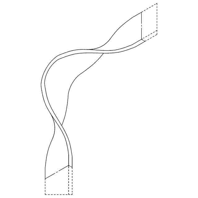 この意匠に係る物品は、電気自動車や電車用の制御回路配線などに使用される長尺バスバーである。本願意匠は、フラットワイズ曲げとねじり加工によって屈曲部を構成したものである。この構成とすることで、高さ方向の嵩張りを屈曲部のみに局限しつつ、曲げ加工時の屈曲部における被覆樹脂の皺や浮き上がりを解消し、亀裂、破れを防止して絶縁性能を維持することができる。また、屈曲部をエッジワイズ曲げで構成したものなどと比して、本体全体に撓みが生じ難いため、ロボットによる取付けにも適している。