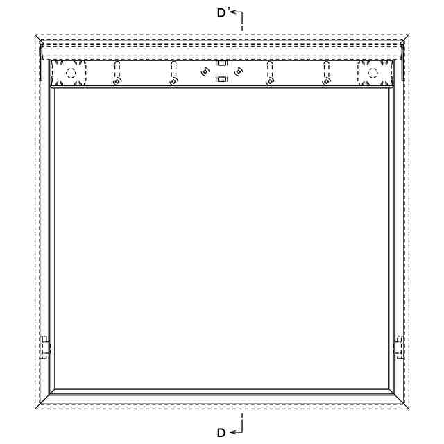 実線で表された部分が、部分意匠として意匠登録を受けようとする部分である。左側面図は右側面図と対称にあらわれるため省略する。開蓋状態の左側面図は開蓋状態の右側面図と対称にあらわれるため省略する。一点鎖線は意匠登録を受けようとする部分とその他の部分との境界のみを示す線である。