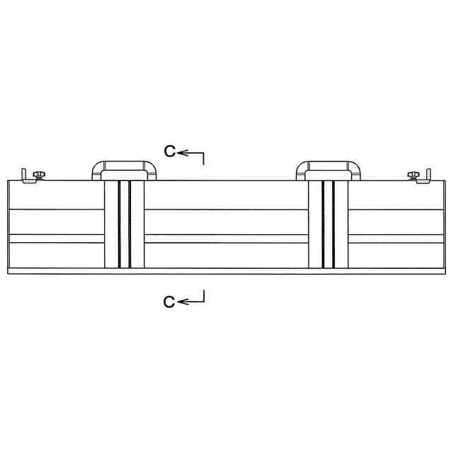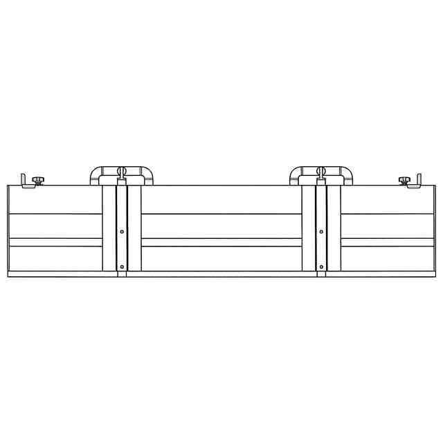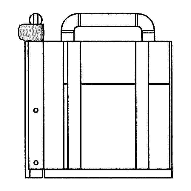 建物の入口開口部(開口寸法2m~)に固定設置される。防水板本体の幅方向の寸法は、建物の入り口開口部の寸法に合わせて、2m前後の長さから適宜の幅寸法にて製作される。薄墨を付した部分(固定金具)以外の部分が意匠登録を受けようとする部分である。