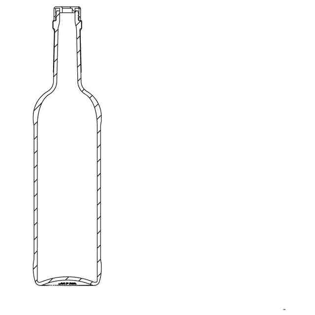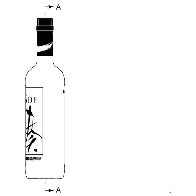 本物品は、キャップ部と首部を覆うラベル及び胴部に貼られるラベルを除いて、全体が透明である。本物品のラベル以外の部分に表れる英数文字は、いずれも瓶の表面に凸状に形成されるものである。上方斜視図及び下方斜視図に表れる途切れた細線、並びに各図においてキャップとその下のリングに表れる白い細線は、立体表面の形状を表す線である。