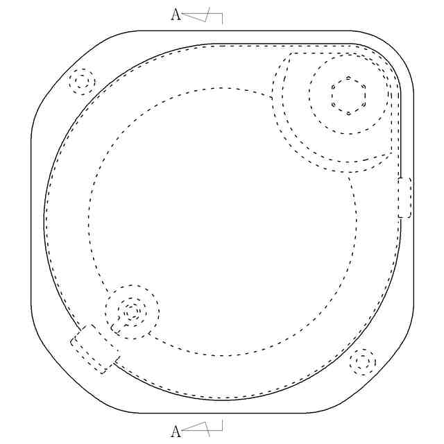 実線で示した部分が部分意匠として意匠登録を受けようとする部分である。A-A線断面図を含めて部分意匠として意匠登録を受けようとする部分を特定している。