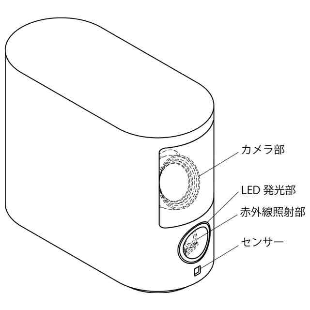 実線で表した部分は部分意匠として意匠登録を受けようとする部分である。「透明部を示す参考斜視図」中、斜線を施したカメラ部及び赤外線照射部の前面パネルは透明である。「使用状態を示す参考図1」及び「使用状態を示す参考図2」は、本物品がゲートに設置された状態の一例を示すものである。