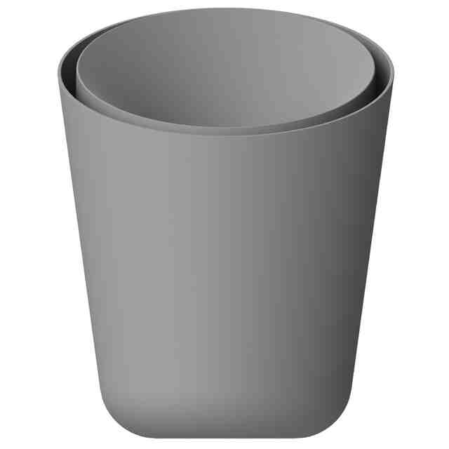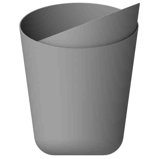 本物品は互いに着脱可能な「本体」と「袋止め」と「袋隠し」とからなるごみ箱である。「本体」はゴミを収容する容器、「袋止め」はゴミ袋の縁などが掛けられることでゴミ袋を保持する部材、「袋隠し」は袋止めで保持したごみ袋の縁などを覆って隠す部材である。使用者は、例えば「正面図」「袋隠しを90度回転した状態の正面図」「袋隠しを180度回転した状態の正面図」のように、設置場所や気分などに応じて袋隠しの配置を自由に変えて使用できる。