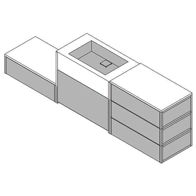 この物品は、調理ユニット、ベースユニット、スタッキングユニット、カウンターユニット等の各ユニットを組み合わせて構成される「一組の厨房設備用品セット」である。「組合せ状態を示す参考斜視図」に表すように、ユニットを並べて積み重ねることができる。また、「異なる配置を示す参考斜視図」「異なる配置を示す参考平面図」に表すように、ユニットの向きを変えて並べることもできる。各ユニットは、例えば収納のための引出や、調理や手洗いに用いることができるシンクを備える。