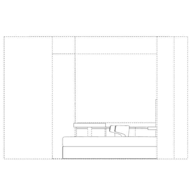 実線で表された部分が意匠登録を受けようとする部分である。A~Eの各斜め上方からの透視図は、A~Eの各方向を示す参考平面図中に示す矢印A~Eの各斜め上方向からそれぞれ部分的に透過して客室内装を示す斜視図である。