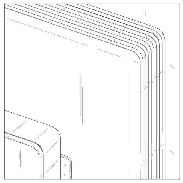 実線で表した部分が、意匠登録を受けようとする部分である。各図の表面部に表された細線は、いずれも立体表面の形状を表す線である。