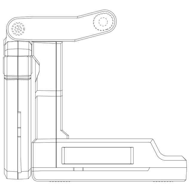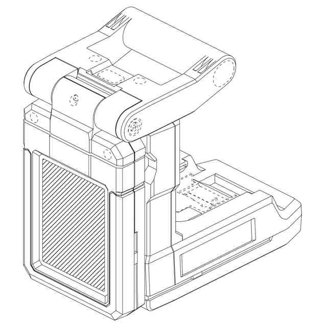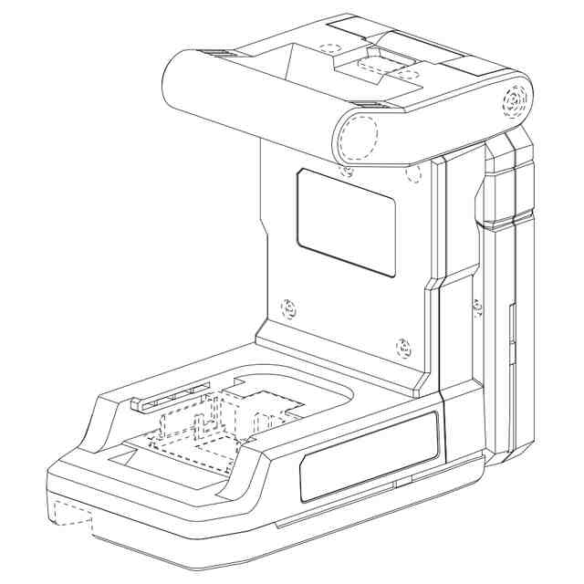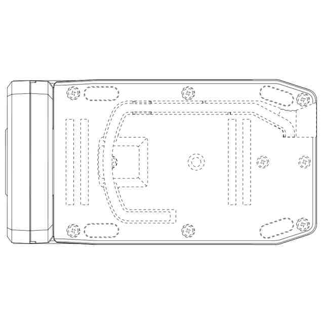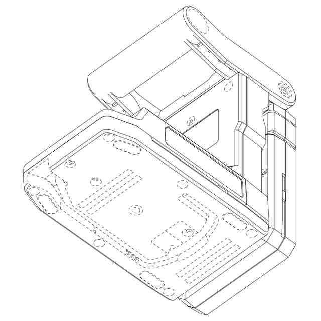 破線で表わされた部分以外が、部分意匠として意匠登録を受けようとする部分である。「透光部を示す参考図」において斜線で表わされた箇所は透光性を有する。