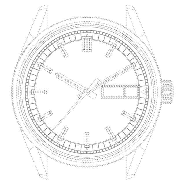 発行日2025-10-28 公報種別意匠公報(S) 登録番号1811742 登録日2025-10-20 意匠に係る物品Watch dial with flange 意匠分類J2-300(時計) 出願番号2025501102 出願日 意匠権者LVMH Swiss Manufactures SA 代理人 意匠に係る物品の説明 意匠の説明1. Design Title: watch dial with flange; 2. Design use: timepiece; 3. Distinctive features: the shapes of the product, as shown; 4. View best illustrating the design: first reproduction, view 1.1; the dotted lines in the figures show the parts which are not part of the claimed design. 1.1)Perspective; 1.2)Bottom; 1.3)Top; 1.4)Right; 1.5)Left; 1.6)Front; 1.7)Back この意匠をJ-PlatPat(特許庁公式サイト)で参照する