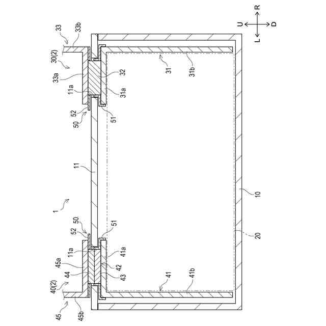 請求項2においては、前記電極には、前記端子の前記厚さ方向一方側の面の全面に対して接合される第一電極と、前記端子の前記厚さ方向他方側の面の全面に対して接合される第二電極と、が含まれるものである。
