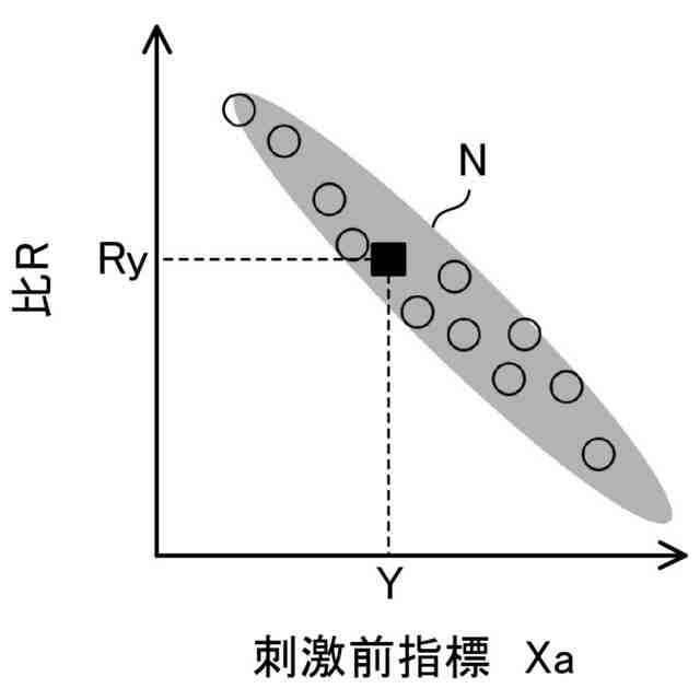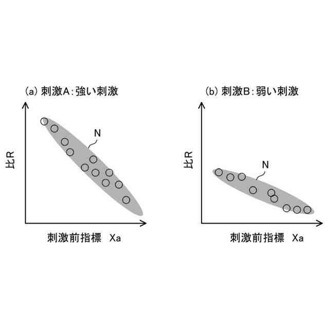 上記刺激前指標と、上記刺激前指標に対する上記刺激後指標の比との関係を示す情報を相関情報としたときに、