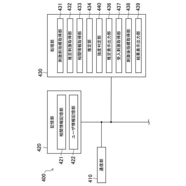 上記刺激前指標取得処理において取得した上記刺激前指標と上記相関情報取得処理において取得した上記相関情報とに基づいて、上記対象者に関する上記刺激後指標を、複数種類の刺激のそれぞれについて推定する処理を、上記推定処理としてコンピュータ(200,400)に実行させる