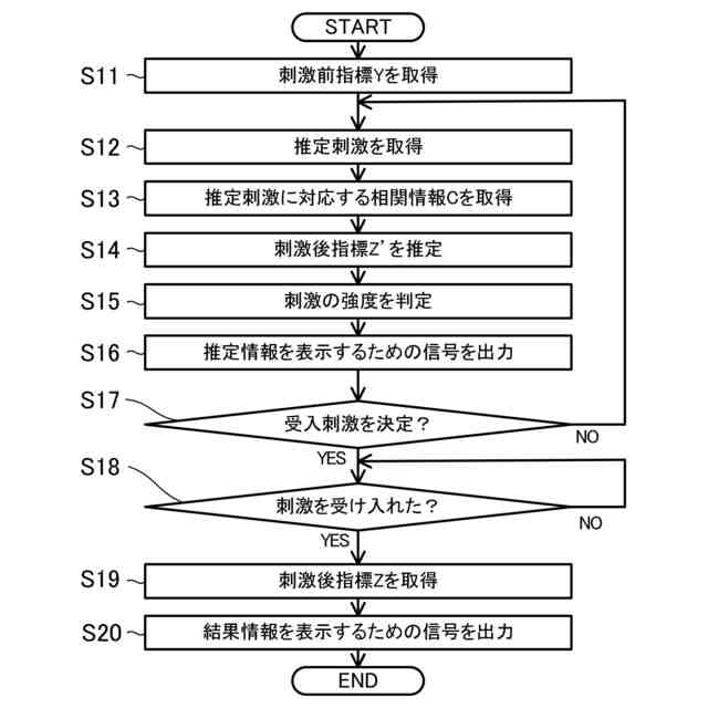 過去に上記推定処理によって推定された上記刺激後指標と、過去に計測された上記刺激後指標との差に基づいて、刺激の推奨度合いを示す推奨度を判定する推奨度判定処理と、