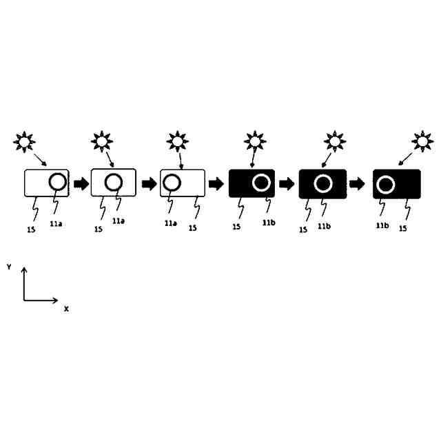図15は、図14に示す潜像の出現方法を説明する模式図である。ネガ型では、背景画像141に形成された回折格子が、入射光を回折する。そのため、基画像142は、背景画像141よりも暗いネガ型の潜像として出現する。また、基画像142は、入射光の角度に応じて一方向に動くように見える。
