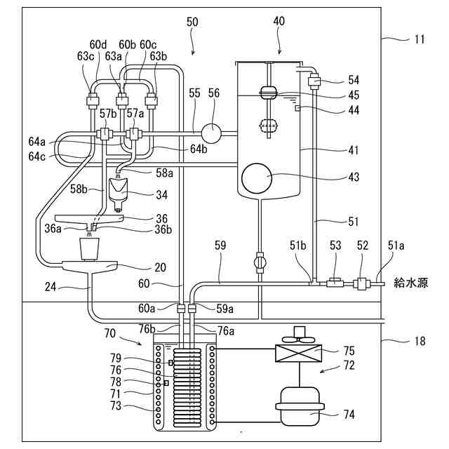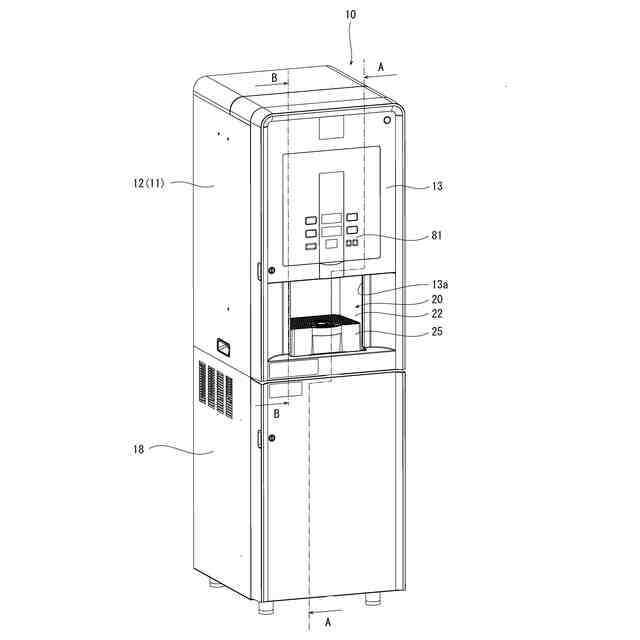 特許文献1には給茶機の発明が開示されている。この給茶機は、本体の前後方向の中間部にパネルを備え、本体におけるパネルの後側を機械室としている。本体におけるパネルの前側には茶葉を貯蔵するキャニスタが設けられており、キャニスタの下部には茶葉を所定量ずつ落下させるドラムが設けられている。キャニスタの下側には茶漉しがファンネルに回動可能に取り付けられており、ファンネルの下側には湯飲み等の容器を載置する載置台が設けられている。機械室には貯湯タンクが設けられており、貯湯タンクには水を加熱して湯とするためのヒータが設けられている。貯湯タンクには電磁弁を介設した給湯管が接続されており、給湯管の先端部はパネルの前面部から突出してシャワー式の給湯口が接続されている。この給茶機で茶を注出するときには、キャニスタからドラムを回動させることで茶葉が入れられた茶漉しに給湯口から湯が吐出され、ファンネルの注出口から湯飲み等の容器に茶が注出される。この給茶機においては、茶漉しを取り付けたファンネルやドラムを回動させるモータはキャニスタに近接する位置に配設されており、モータを作動させたときの熱はキャニスタに伝達されている。