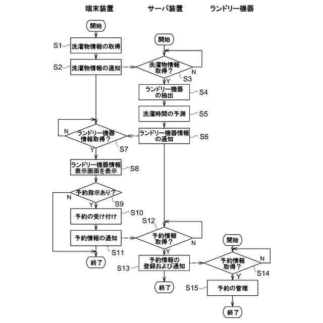 前記終了予定時刻が、前記ランドリー機器データベースにおける前記ランドリー機器の稼働スケジュールに反映される、
