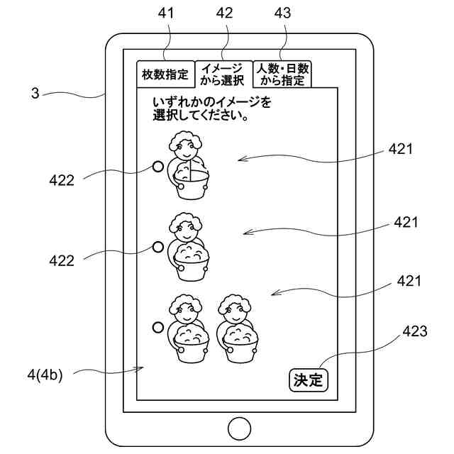 それぞれが重さの異なる洗濯物と対応する複数のイメージを、前記端末装置の表示部に表示させるとともに、前記利用者から前記複数のイメージのいずれかの選択を受け付け、選択されたイメージと対応する洗濯物の重さを、前記洗濯物情報として取得し、