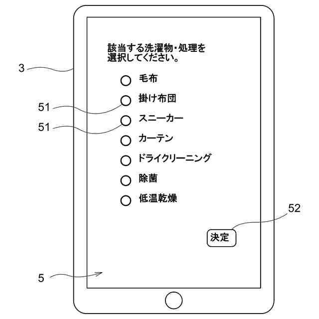 利用者側の端末装置において、洗濯物に関する情報である洗濯物情報を取得する洗濯物情報取得部と、