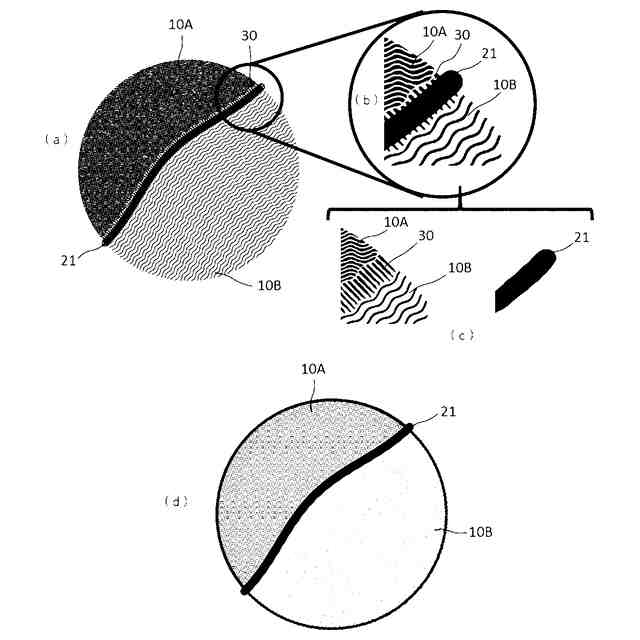 前記なじみ境界部が前記第1印刷A模様の第1印刷A模様濃度より模様濃度が薄く、前記第1印刷B模様の第1印刷B模様濃度より模様濃度が濃い中間模様濃度であり、