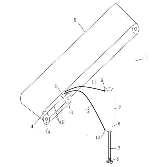 エアシリンダー、ロータリーアクチュエータ、ラチェットベアリング、ベルトコンベヤーを備えたスクラップ搬送装置において、