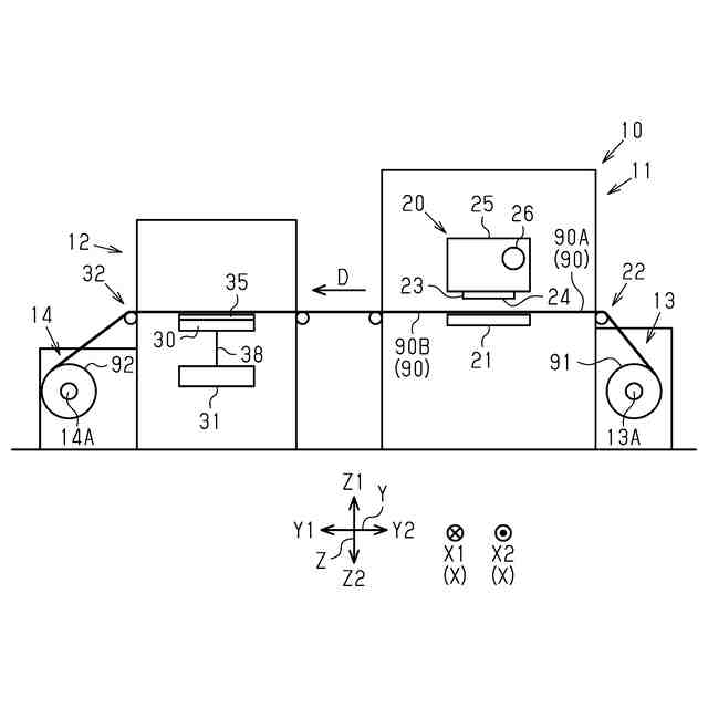 記録システム10は、記録装置11を備える。記録装置11は、媒体90に記録を行うように構成される。特に、記録装置11は、媒体90に液体を吐出することにより、媒体90に記録を行う。記録装置11は、液体の一例であるインクを媒体90に吐出することにより記録を行うインクジェット式のプリンターであってもよい。媒体90は、表面90Aと裏面90Bとを備える。媒体90は、布帛であるが、例えば紙などであってもよい。