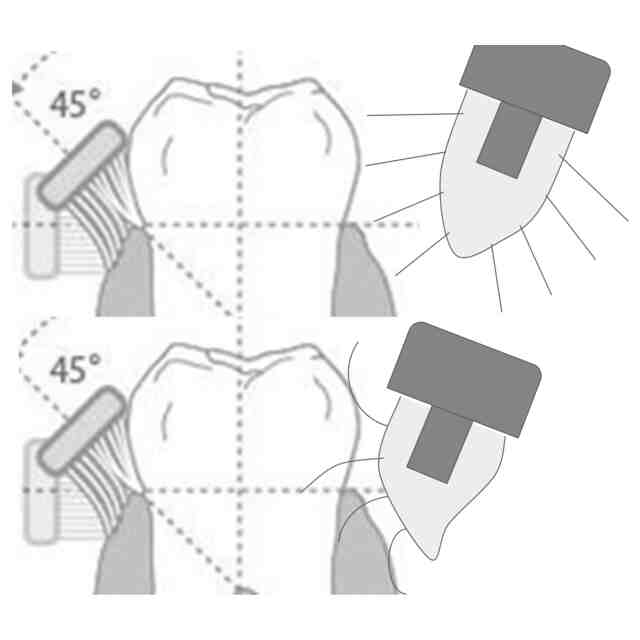 両回転ブラシの該毛は、歯と歯肉の側面を同時に覆うことができる程度に植毛されており、