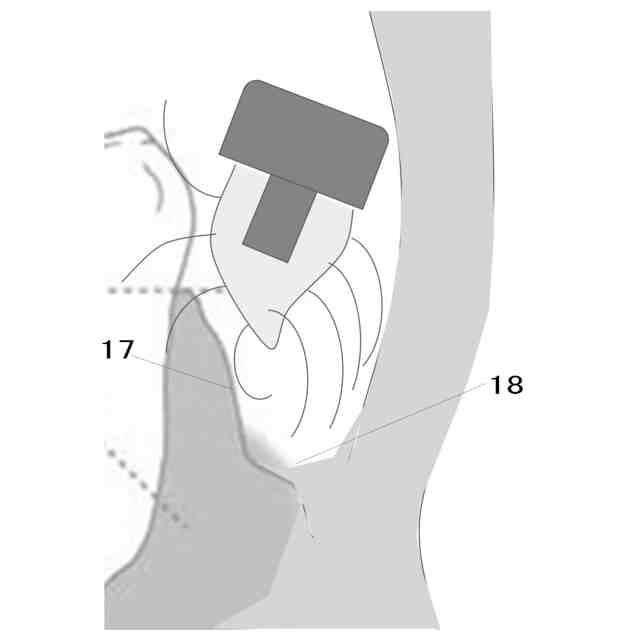 歯ブラシ補助具を歯に対して使用している様子を示した。