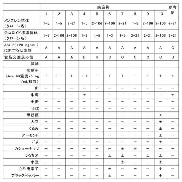 Ara h1タンパク質を標的とするモノクローナル抗体を用いた検出用キットまたは検出方法は、食品検体中のAra h1タンパク質の濃度が低いときには検出感度が悪く、一方で食品検体中のAra h1タンパク質の濃度が高いときには偽陰性となって検出できないといった問題点があった。また、食品がAra h1欠損落花生を用いて製造されている場合は、Ara h1タンパク質を標的とするモノクローナル抗体を用いた検出用キットまたは検出方法によっては落花生アレルゲンを検出できず、Ara h2、Ara h3タンパク質のアレルギー患者にとって大きな問題となる。さらに、落花生中の主要アレルゲンタンパク質であるAra h1の含有量は加熱よって増減するため、Arah1の検査キットで落花生を検出しにくい問題がある。