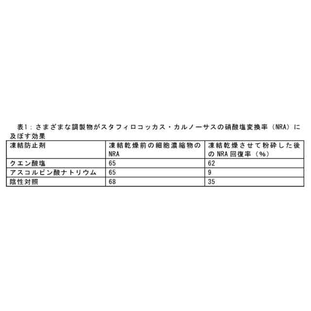 【解決手段】本発明は、硝酸レダクターゼ活性を有する乳酸菌および/またはミクロコッカス科の細菌(例えばブドウ球菌属の種)を含み、かつクエン酸またはその塩(クエン酸塩)を含む濃縮培養物に関する。